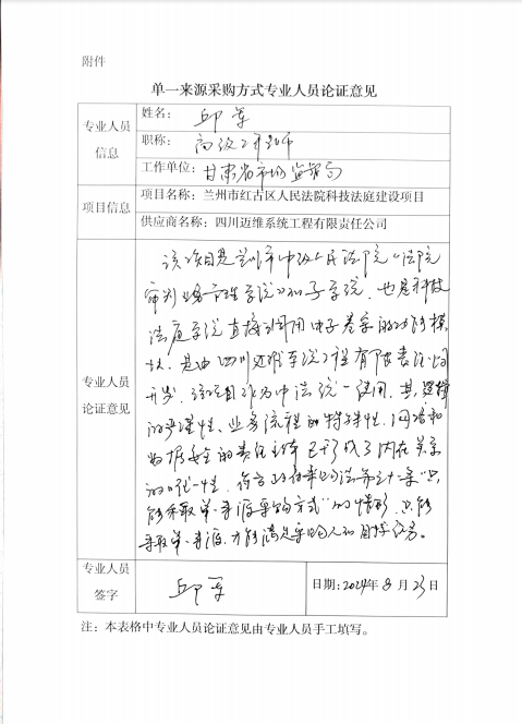 蘭州市紅古區(qū)人民法院科技法庭建設項目單一來源公示