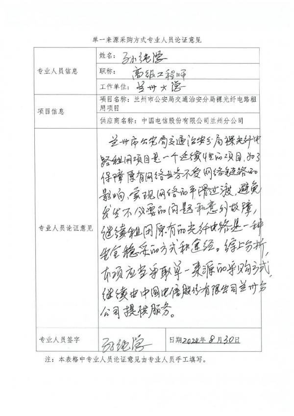 蘭州市公安局交通治安分局裸光纖電路租用項目單一來源公示