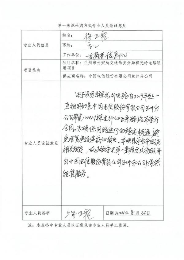 其中地鐵一號線裸光纖主、備鏈路起租于2019年、大砂坪檢查站方艙公安網(wǎng)鏈路起租于2019年、天北智慧檢查站公安網(wǎng)鏈路起租于2020年、東方紅軌道所專網(wǎng)鏈路起租于2019年,租費根據(jù)我局與中國電信股份有限公司蘭州分公司簽訂的合同約定,我局租用中國電信股份有限公司蘭州分公司帶寬為1000M的光纖專線鏈路五條。另外天水北路高速公路車卡預警探頭鏈路起租于2019年、東崗交通治安派出所公安網(wǎng)鏈路鏈路起租于2017年,租費根據(jù)我局與中國電信股份有限公司蘭州分公司簽訂的合同約定,我局租用中國電信股份有限公司蘭州分公司帶寬為100M的光纖專線鏈路三條。本項目采購內(nèi)容,我局分別于2017年、2018年、2019年、2020年開始起租,多年來一直由中國電信股份有限公司蘭州分公司為我局提供網(wǎng)絡鏈路租賃服務,期間網(wǎng)絡運行穩(wěn)定通暢,較好的保障了交通治安分局各平臺及相關應用系統(tǒng)的正常運行。鏈路服務及時、周到,網(wǎng)絡配置準確無誤,保證了我局應用系統(tǒng)運行的延續(xù)性、穩(wěn)定性、安全性、保密性。以上項目涉及視頻監(jiān)控都已接入“蘭州市公安局社會治安視頻監(jiān)控平臺”,為避免重復建設造成的安全隱患和資源浪費,依據(jù)《政府采購法》第三十一條第一項的規(guī)定,擬采用單一來源采購方式,繼續(xù)由中國電信股份有限公司蘭州分公司提供網(wǎng)絡鏈路租賃服務。