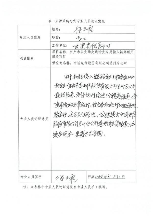 出租車VPN視頻接入鏈路于2020年起租,由中國電信股份有限公司蘭州分公司提供服務(wù),根據(jù)我局與中國電信股份有限公司蘭州分公司于2020年4月簽訂的《蘭州市公安局交通治安分局互聯(lián)網(wǎng)專線業(yè)務(wù)租賃合同》約定,我局租用中國電信股份有限公司蘭州分公司帶寬為100M的互聯(lián)網(wǎng)光纖專線鏈路一條,用于滿足分局公共交通治安管控需求。通過該鏈路實現(xiàn)分局出租汽車治安管理系統(tǒng)與城市運管部門數(shù)據(jù)實時對接,可實時查看出租車及網(wǎng)約車的實時車內(nèi)監(jiān)控和車輛的GPS數(shù)據(jù)。分局財政專網(wǎng)按照全市財務(wù)工作要求起租于2018年,由中國電信股份有限公司蘭州分公司提供服務(wù),租費根據(jù)上一年度專線租費合同計算。該業(yè)務(wù)費用參考借鑒蘭州市財政局與中國電信股份有限公司蘭州分公司租用專網(wǎng)合同費用計算方法,且在我局與中國電信股份有限公司蘭州分公司簽約的《蘭州市公安局交通治安分局財政專線租賃合同》中予以明確,并按此標(biāo)準(zhǔn)執(zhí)行至今,分局財務(wù)各項工作全部在該專網(wǎng)部署運行。本項目采購內(nèi)容,我局分別于2017年、2018年、2019年、2020年開始起租,多年來一直由中國電信股份有限公司蘭州分公司為我局提供網(wǎng)絡(luò)鏈路租賃服務(wù),期間網(wǎng)絡(luò)運行穩(wěn)定通暢,較好的保障了交通治安分局各平臺及相關(guān)應(yīng)用系統(tǒng)的正常運行。鏈路服務(wù)及時、周到,網(wǎng)絡(luò)配置準(zhǔn)確無誤,保證了我局應(yīng)用系統(tǒng)運行的延續(xù)性、穩(wěn)定性、安全性、保密性。以上項目涉及視頻監(jiān)控都已接入“蘭州市公安局社會治安視頻監(jiān)控平臺”,為避免重復(fù)建設(shè)造成的安全隱患和資源浪費,加之該項目業(yè)務(wù)費用是參考借鑒蘭州市財政局與中國電信股份有限公司蘭州分公司租用專網(wǎng)合同費用計算方法。依據(jù)《政府采購法》第三十一條第一項的規(guī)定,擬采用單一來源采購方式,繼續(xù)由中國電信股份有限公司蘭州分公司提供網(wǎng)絡(luò)鏈路租賃服務(wù)。