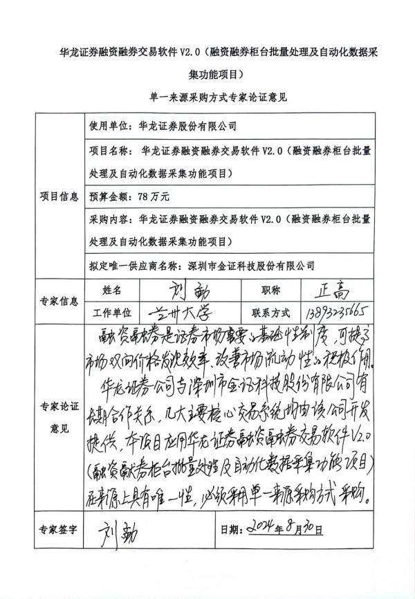 (二)項(xiàng)目名稱:華龍證券融資融券交易軟件V2.0(融資融券柜臺(tái)批量處理及自動(dòng)化數(shù)據(jù)采集功能項(xiàng)目)