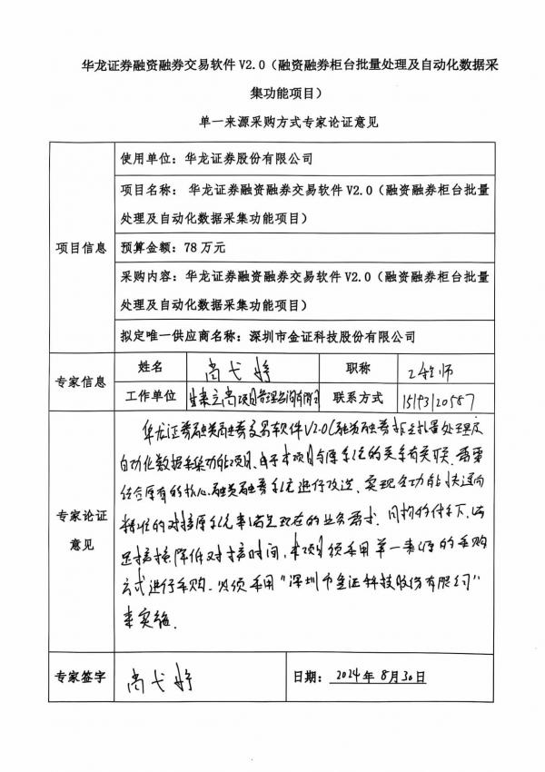 (十)任何供應(yīng)商、單位或個(gè)人對(duì)該項(xiàng)目采用單一來源采購方式有異議的,可以在公示期內(nèi)將書面意見反饋給華龍證券股份有限公司。