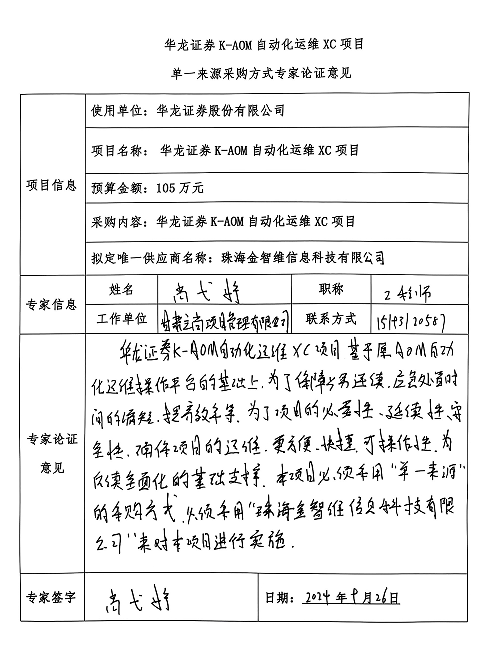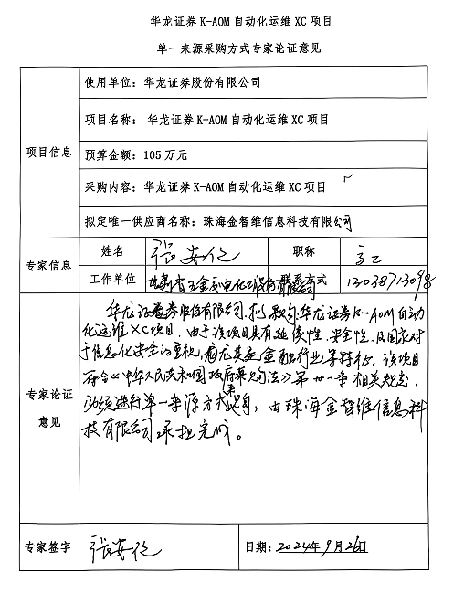 (二)項目名稱:華龍證券K-AOM自動化運(yùn)維XC項目