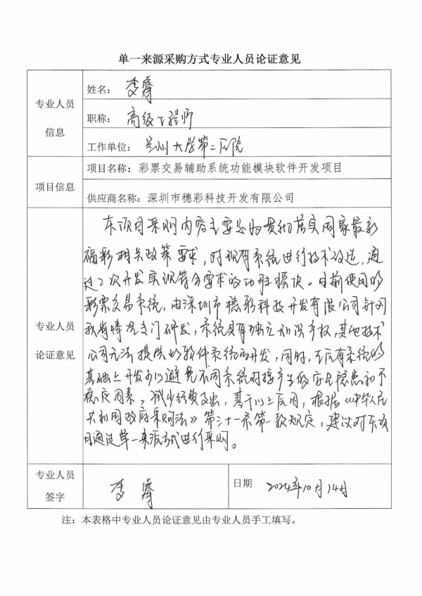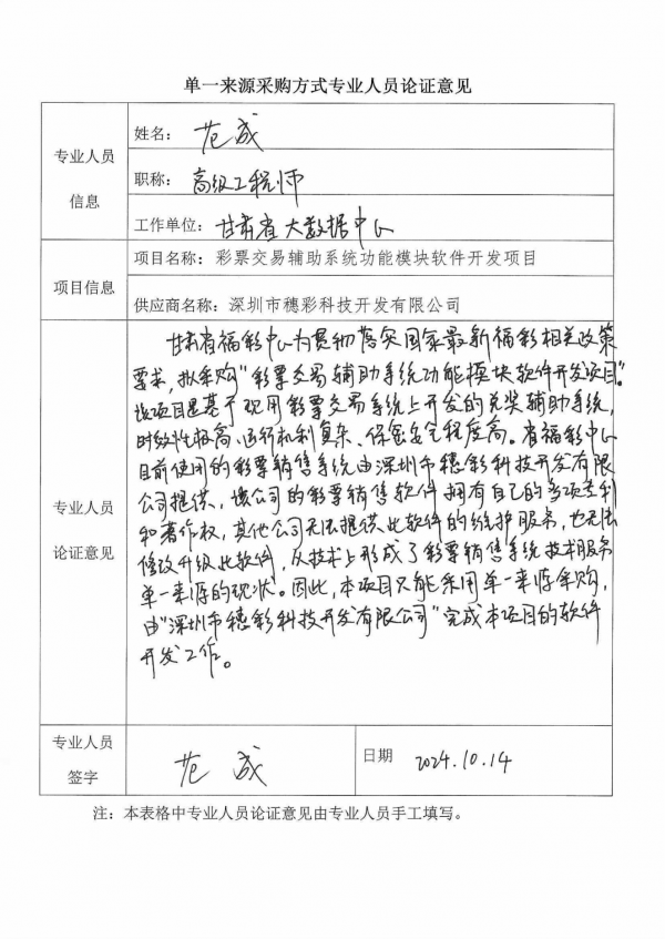 采用單一來源采購方式的原因及說明:根據國家和中福彩中心對福利彩票工作的最新要求,甘肅省福利彩票發(fā)行管理中心需對彩票銷售系統(tǒng)軟件開發(fā),以滿足和中福彩中心系統(tǒng)新功能的對接。甘肅省福彩中心使用深圳市穗彩科技開發(fā)有限公司的彩票銷售軟件,該公司具有該軟件的獨立知識產權,其他公司無法對該軟件進行二次開發(fā),技術上形成了彩票交易軟件的單一來源現狀,故采用單一來源采購方式。