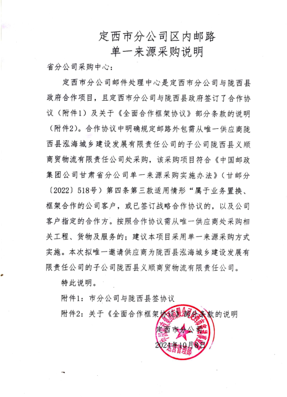 定西市分公司區(qū)內郵路運輸服務外包項目