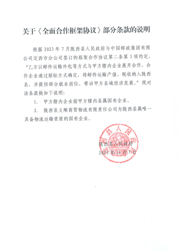 七、擬定的唯一供應商:隴西縣義順商貿物流有限責任公司