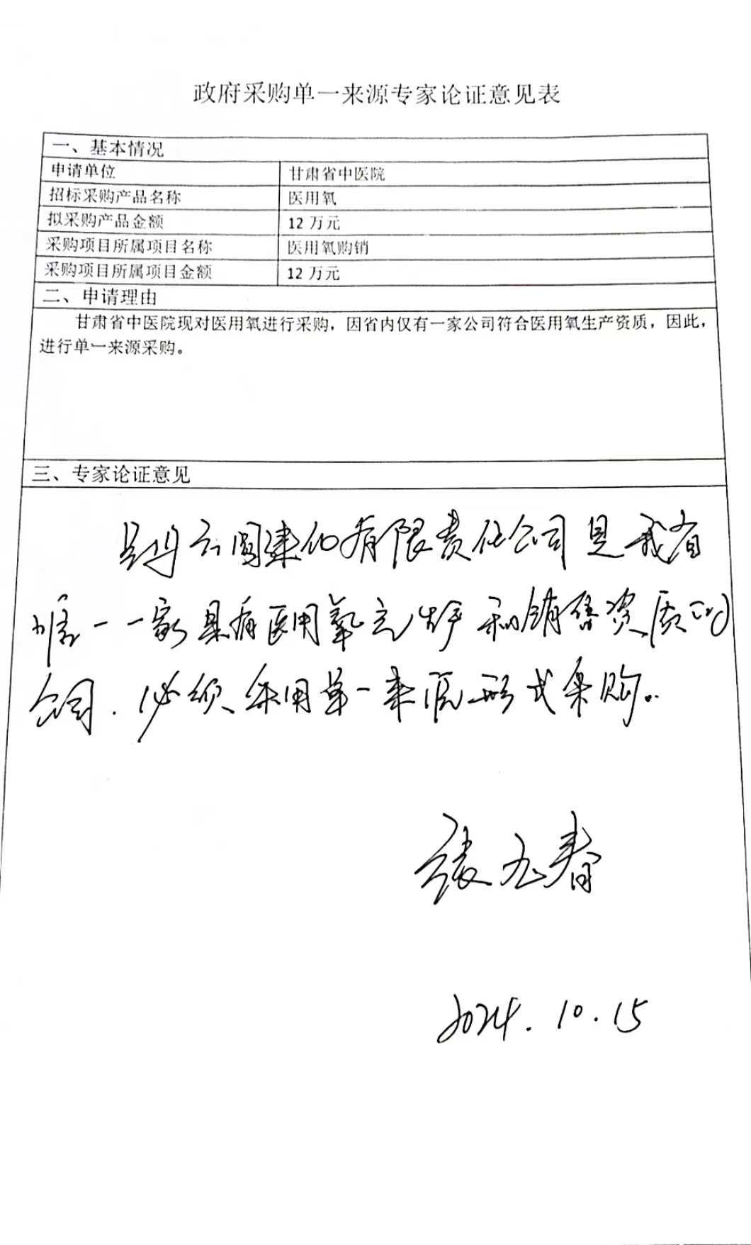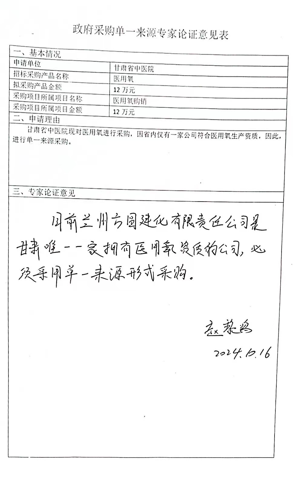 甘肅省中醫(yī)院醫(yī)用氧購銷項目單一來源公示