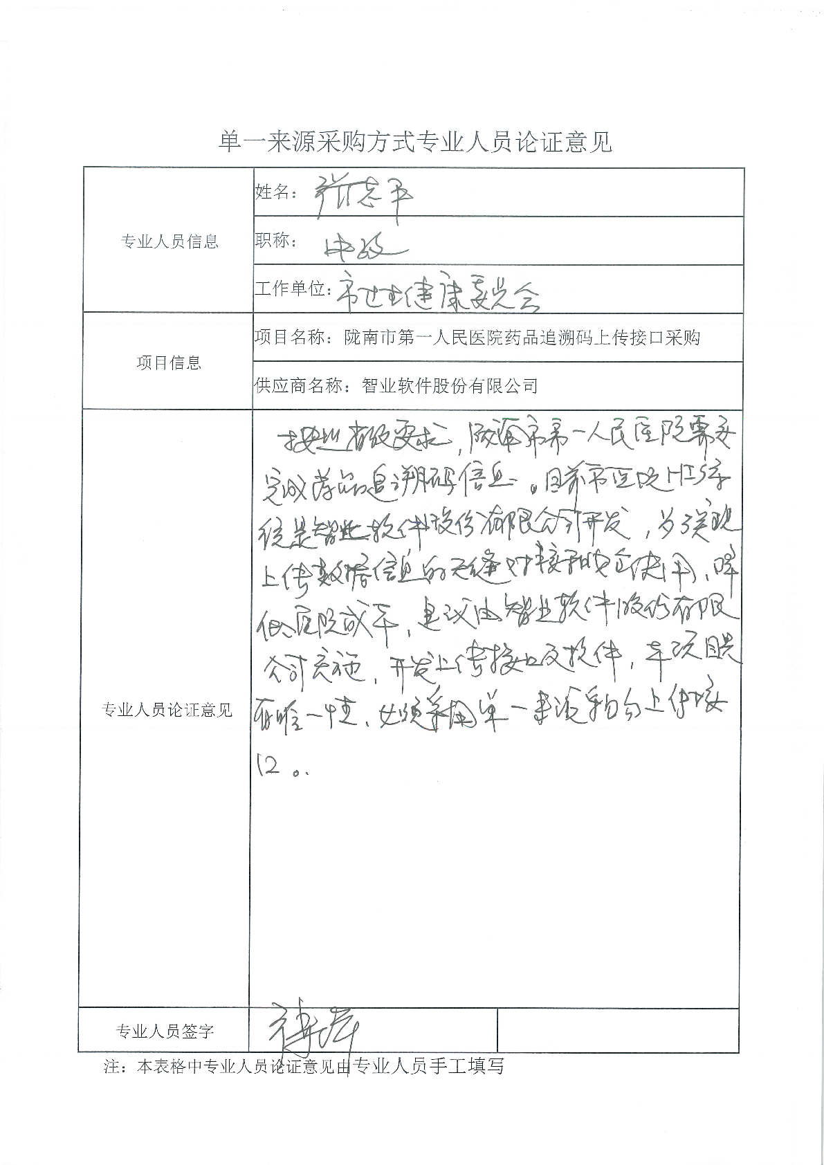 采用單一來源采購方式的原因及說明:按照省級主管部門要求,隴南市第一人民醫(yī)院需完成藥品追溯碼信息采集上傳,因目前市醫(yī)院HIS系統(tǒng)是智業(yè)軟件股份有限公司開發(fā),誒保證醫(yī)院各項(xiàng)業(yè)務(wù)正常開展,實(shí)現(xiàn)藥品追溯碼數(shù)據(jù)無縫對接上傳,達(dá)到省級主管部門要求,降低建設(shè)成本,該項(xiàng)目必須由智業(yè)軟件股份有限公司開發(fā),建設(shè)單位具有唯一性,必須采用單一來源采購。