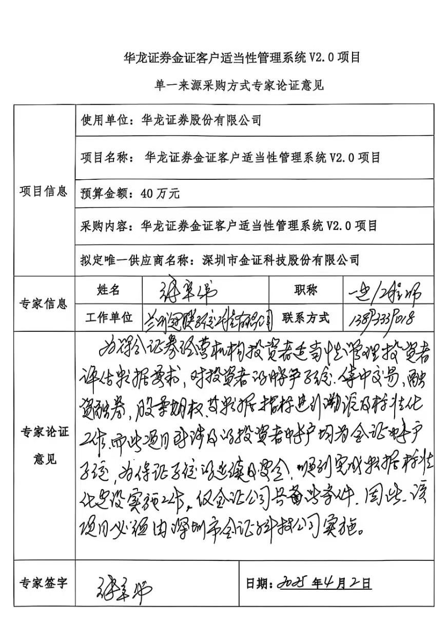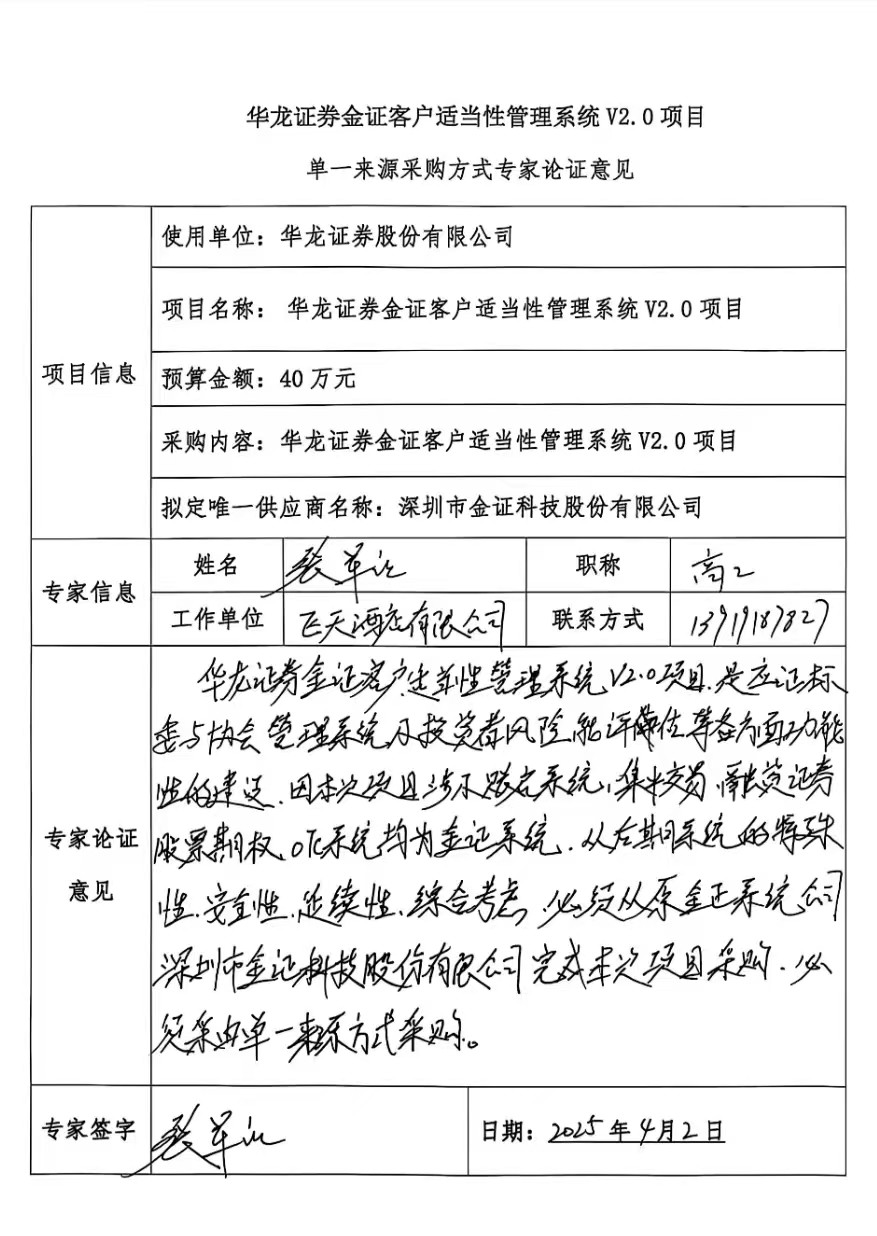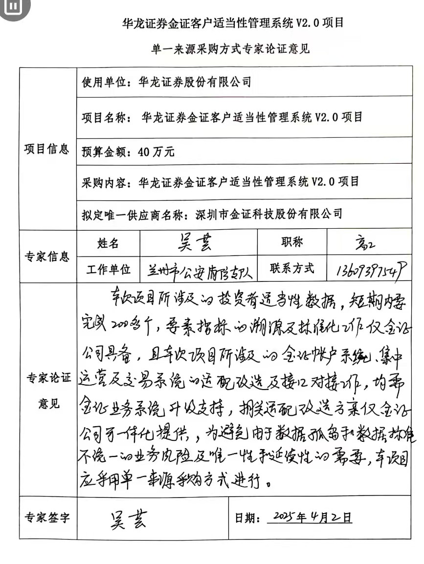 (二)項目名稱:華龍證券金證客戶適當(dāng)性管理系統(tǒng)V2.0項目
