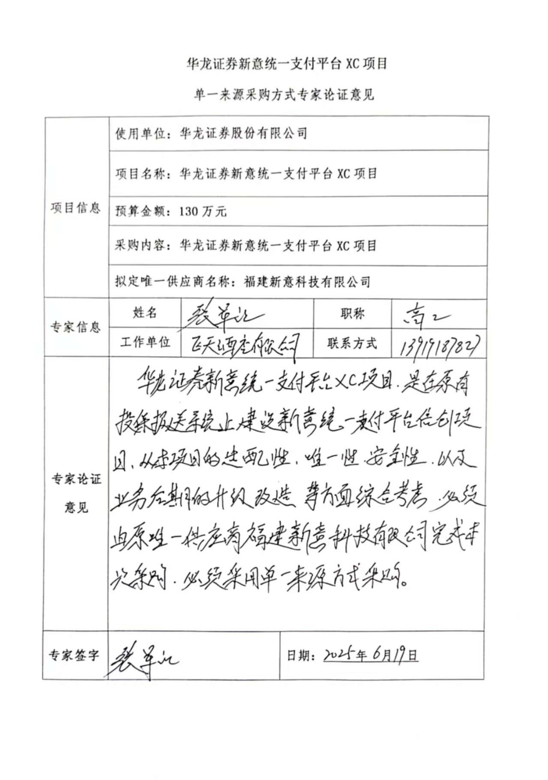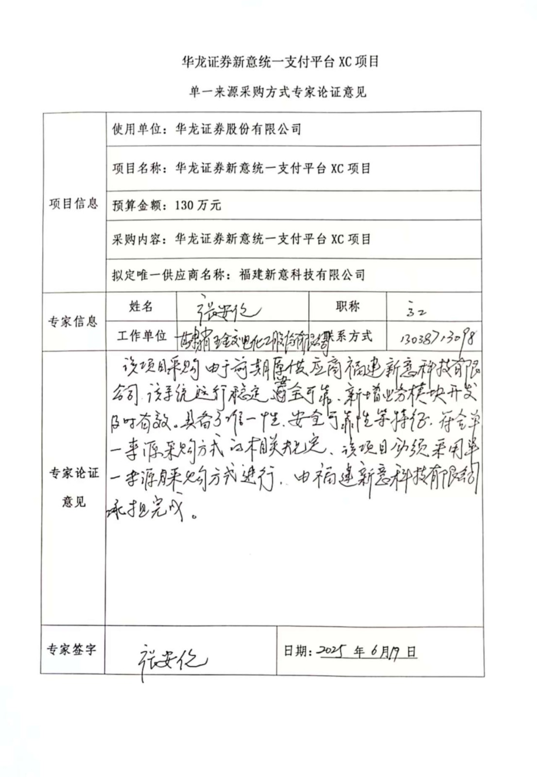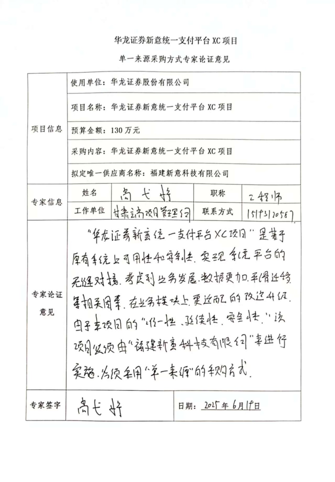 ? ?1、唯一性:目前華龍證券已采用的新意統(tǒng)一支付平臺非信創(chuàng)版運行穩(wěn)定,安全可靠。從系統(tǒng)建設成本、運維效率及新增功能的可用性和安全性,以及后續(xù)人員快速上手等方面考慮,故該項目具有唯一性。