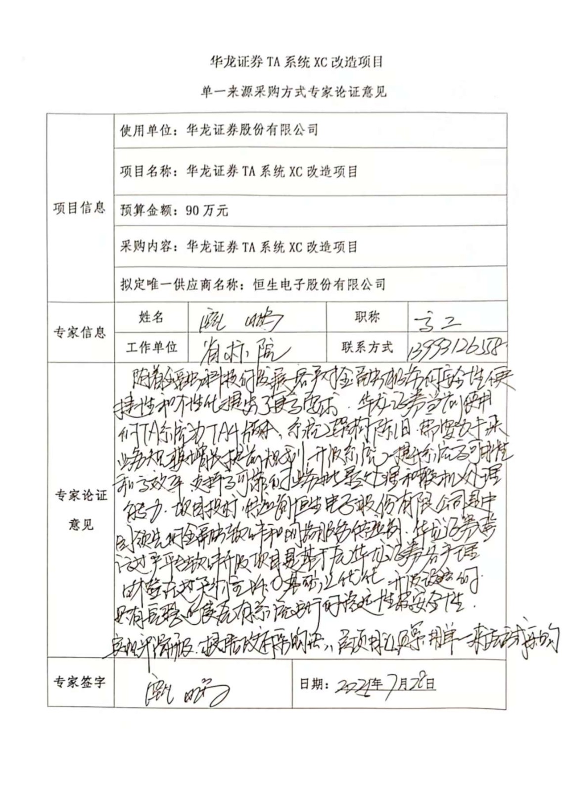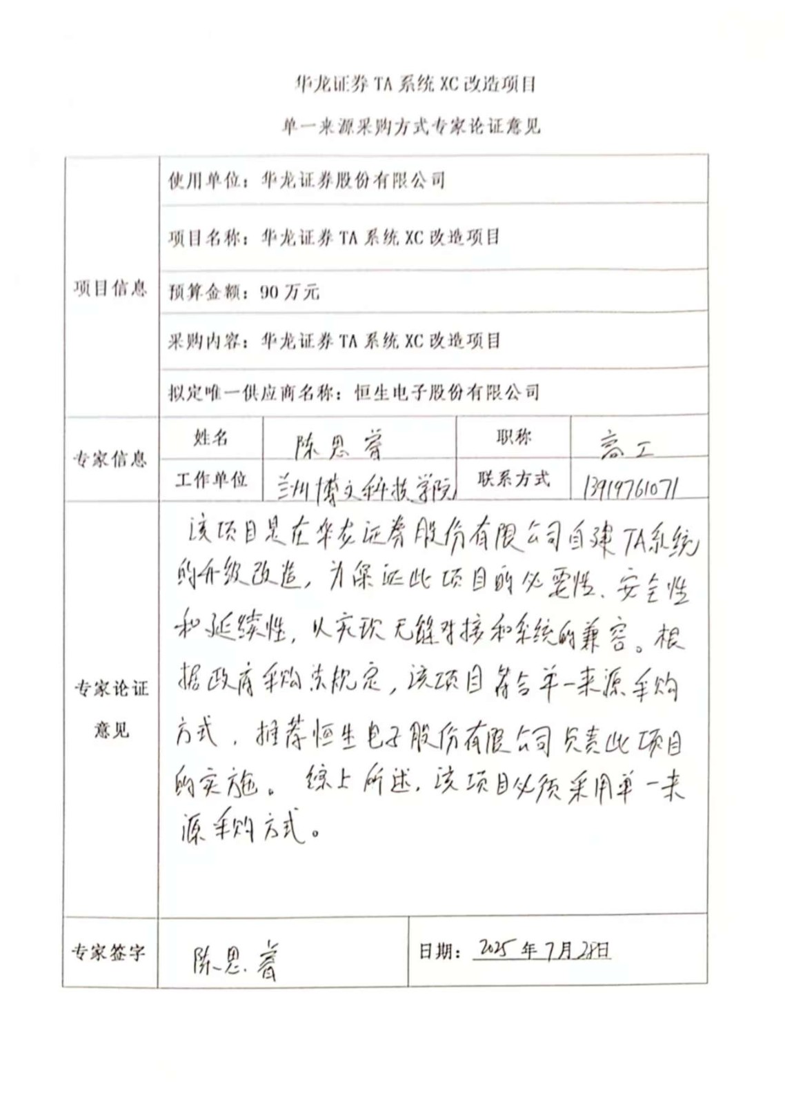 - 擬定的唯一供應商:恒生電子股份有限公司