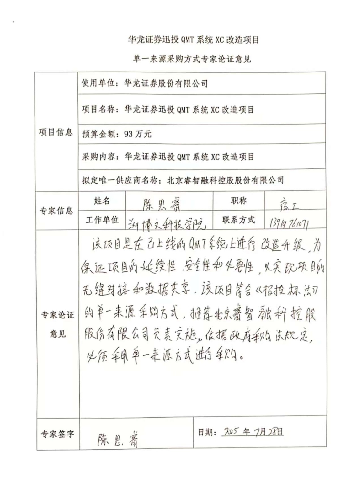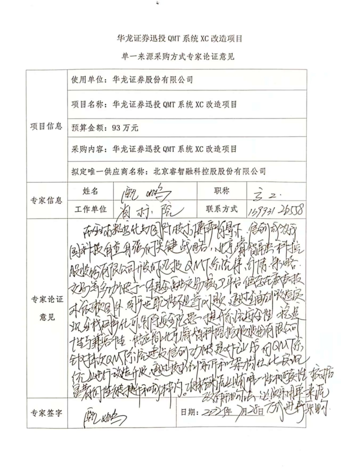 (十)任何供應商、單位或個人對該項目采用單一來源采購方式有異議的,可以在公示期內將書面意見反饋給華龍證券股份有限公司。
