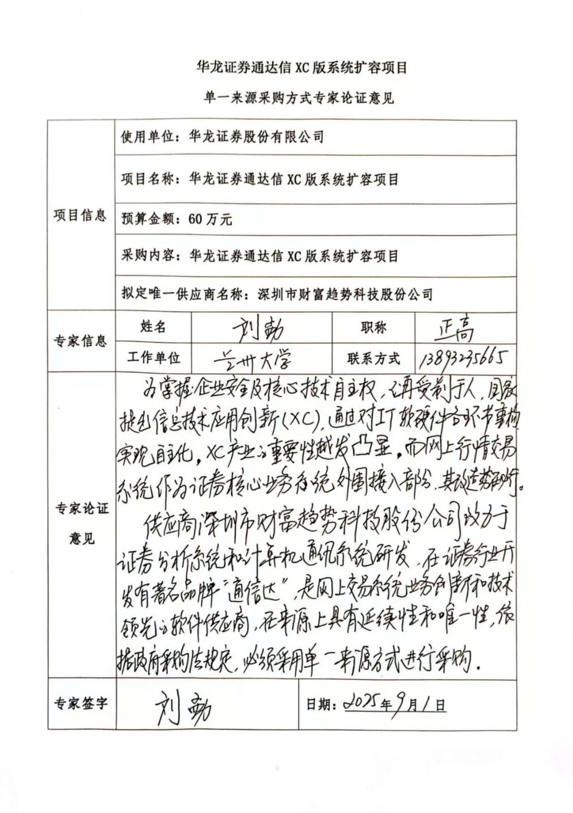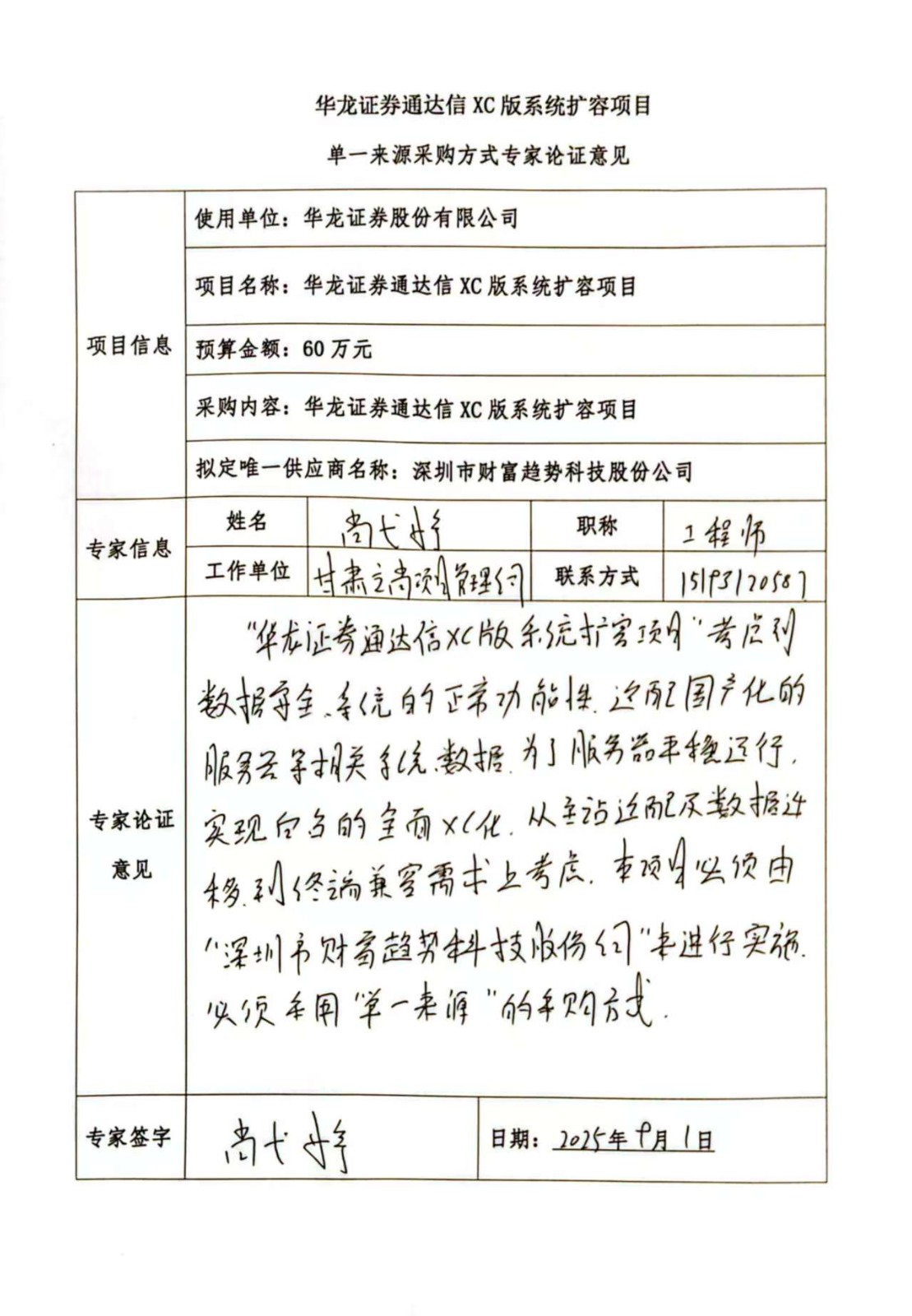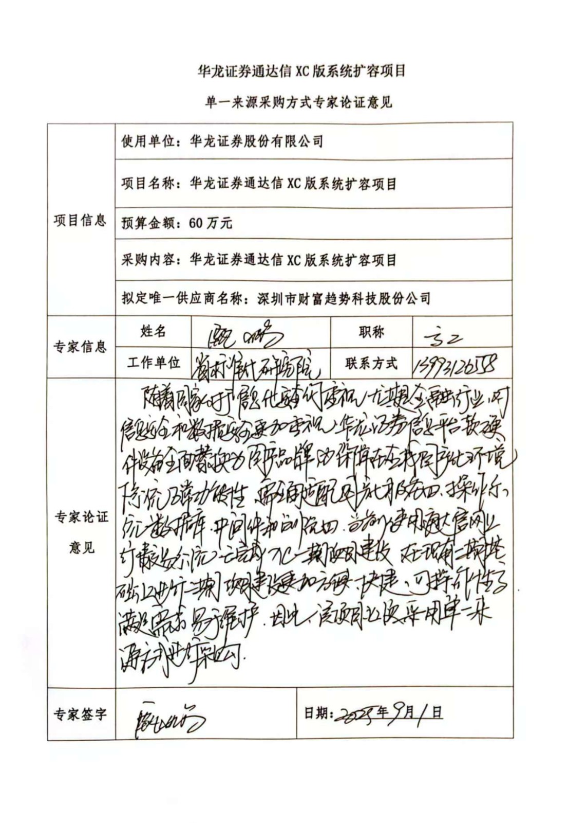 (九)任何供應商、單位或個人對該項目采用單一來源采購方式有異議的,可以在公示期內(nèi)將書面意見反饋給華龍證券股份有限公司。