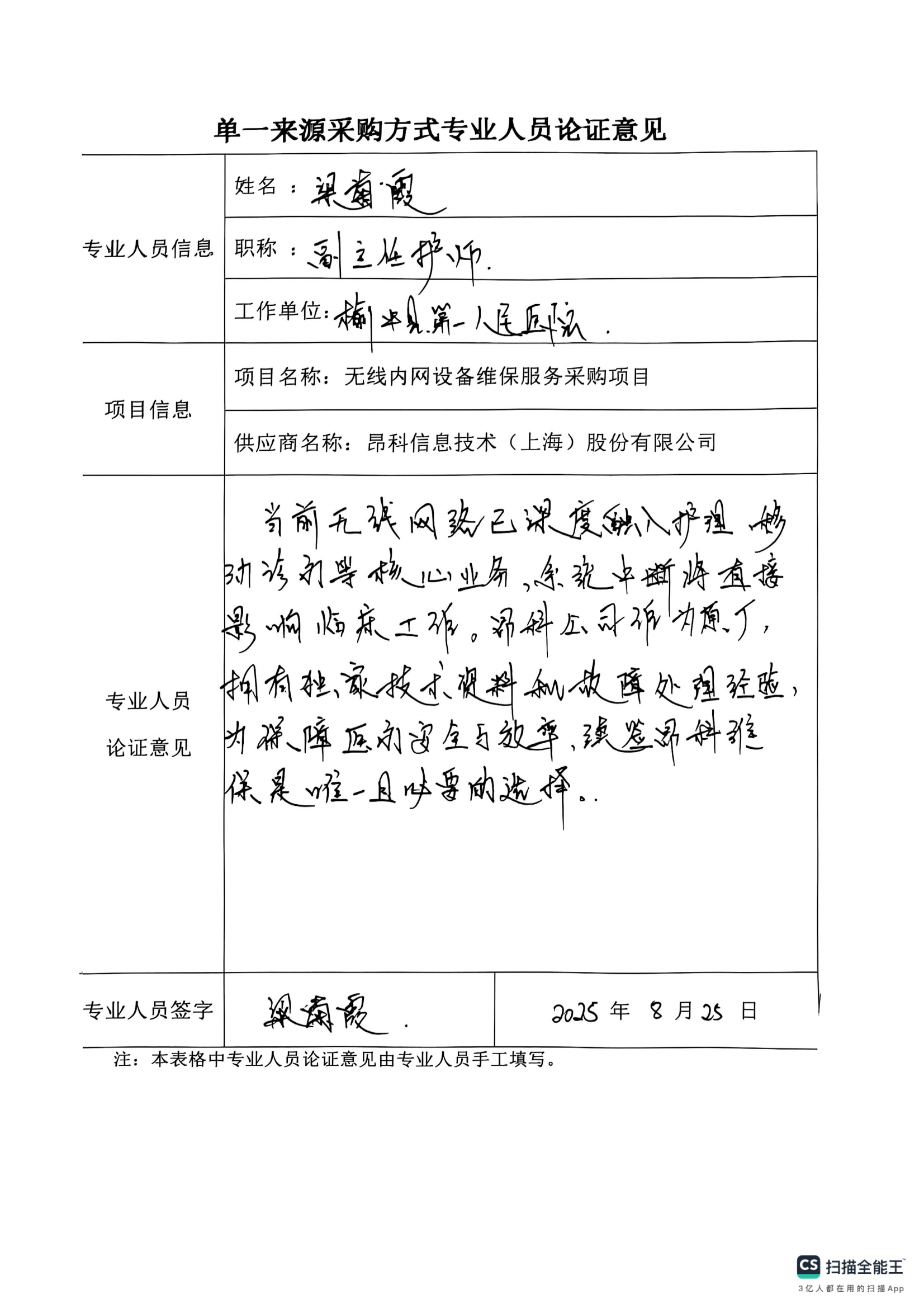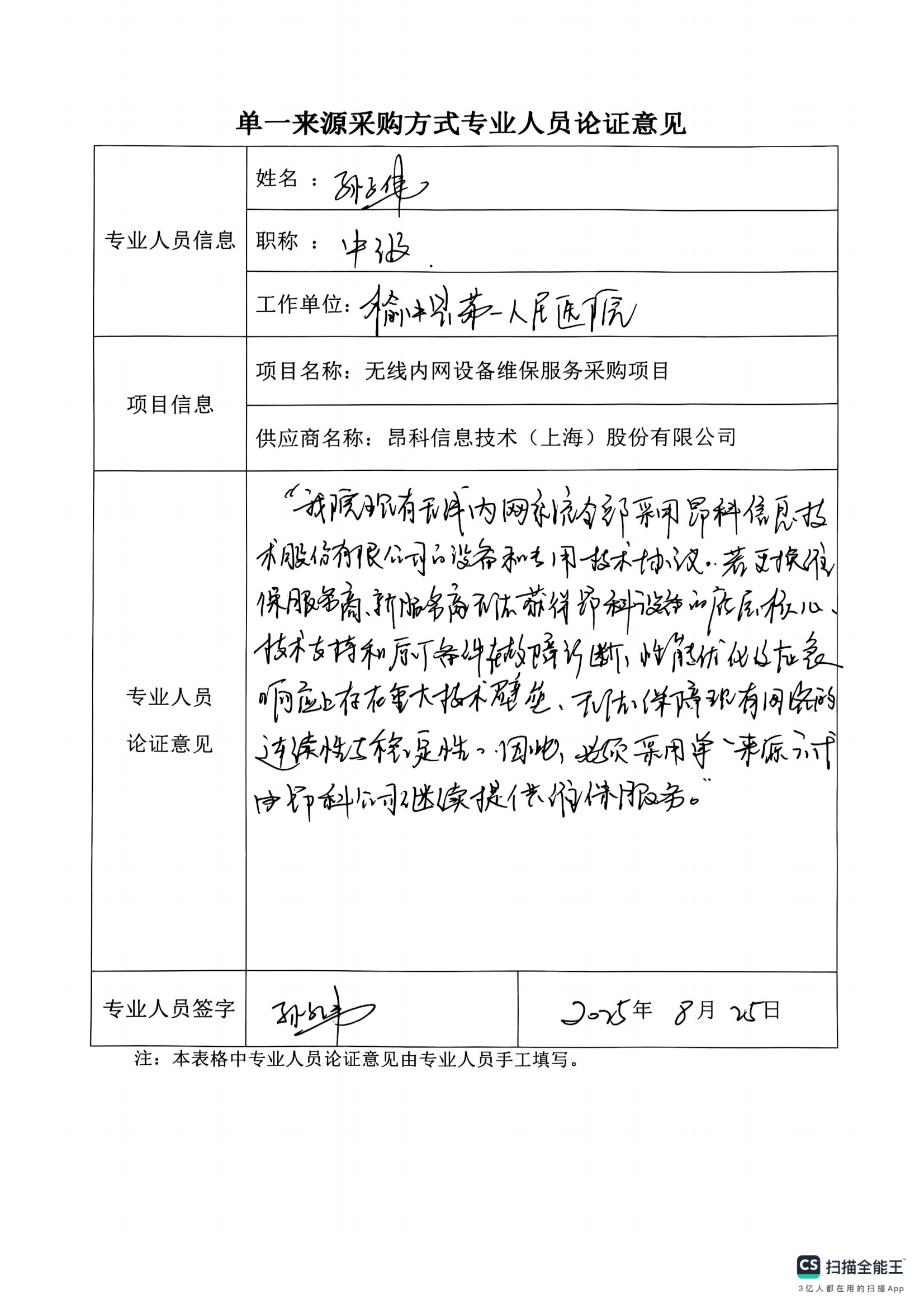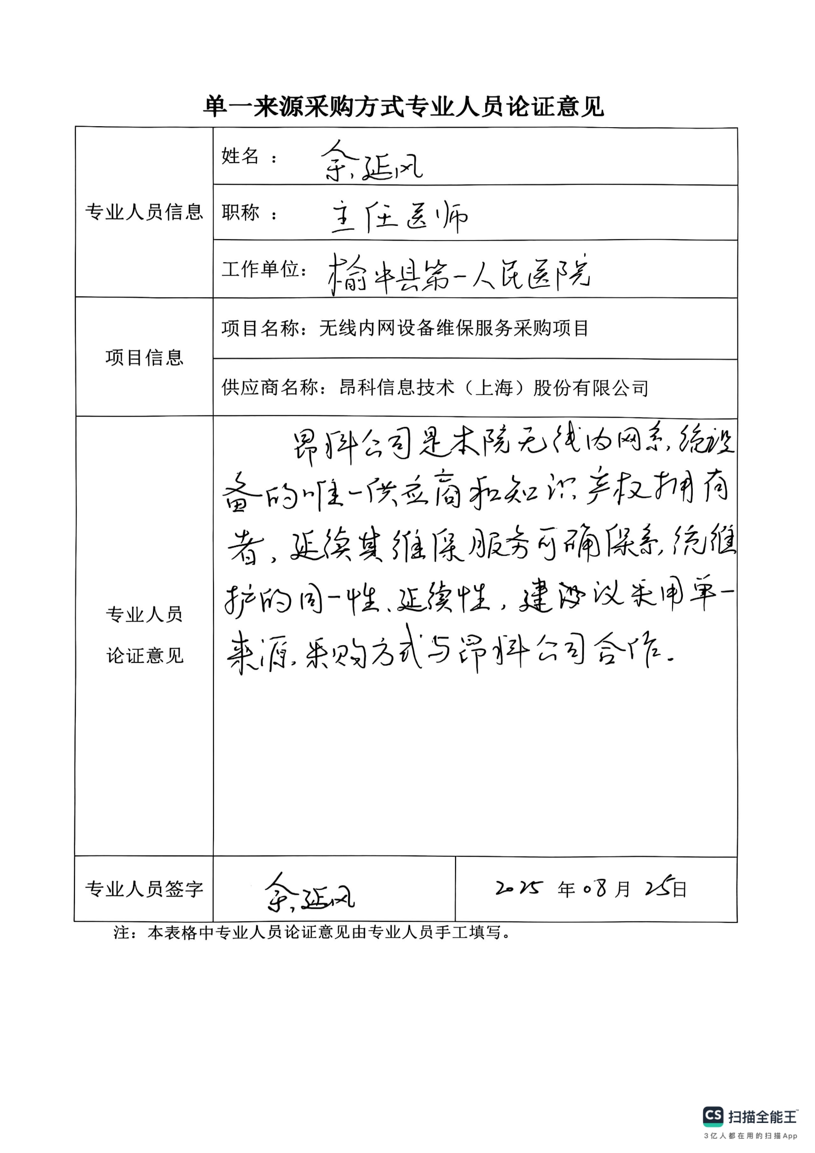 采用單一來源采購方式的原因及說明:醫(yī)院當(dāng)前無線內(nèi)網(wǎng)全部采用昂科信息技術(shù)(上海)股份有限公司的設(shè)備和專用技術(shù)協(xié)議,已深度融入護(hù)理、移動診療等核心業(yè)務(wù),若更換維保服務(wù)商,系統(tǒng)中斷直接影響臨床工作,為保障醫(yī)療安全與效率,根據(jù)《榆中縣第一人民醫(yī)院采購管理內(nèi)部控制制度》第五十五條之規(guī)定,采用院內(nèi)單一來源采購方式。擬推薦昂科信息技術(shù)(上海)股份有限公司為本項(xiàng)目單一來源供應(yīng)商。
