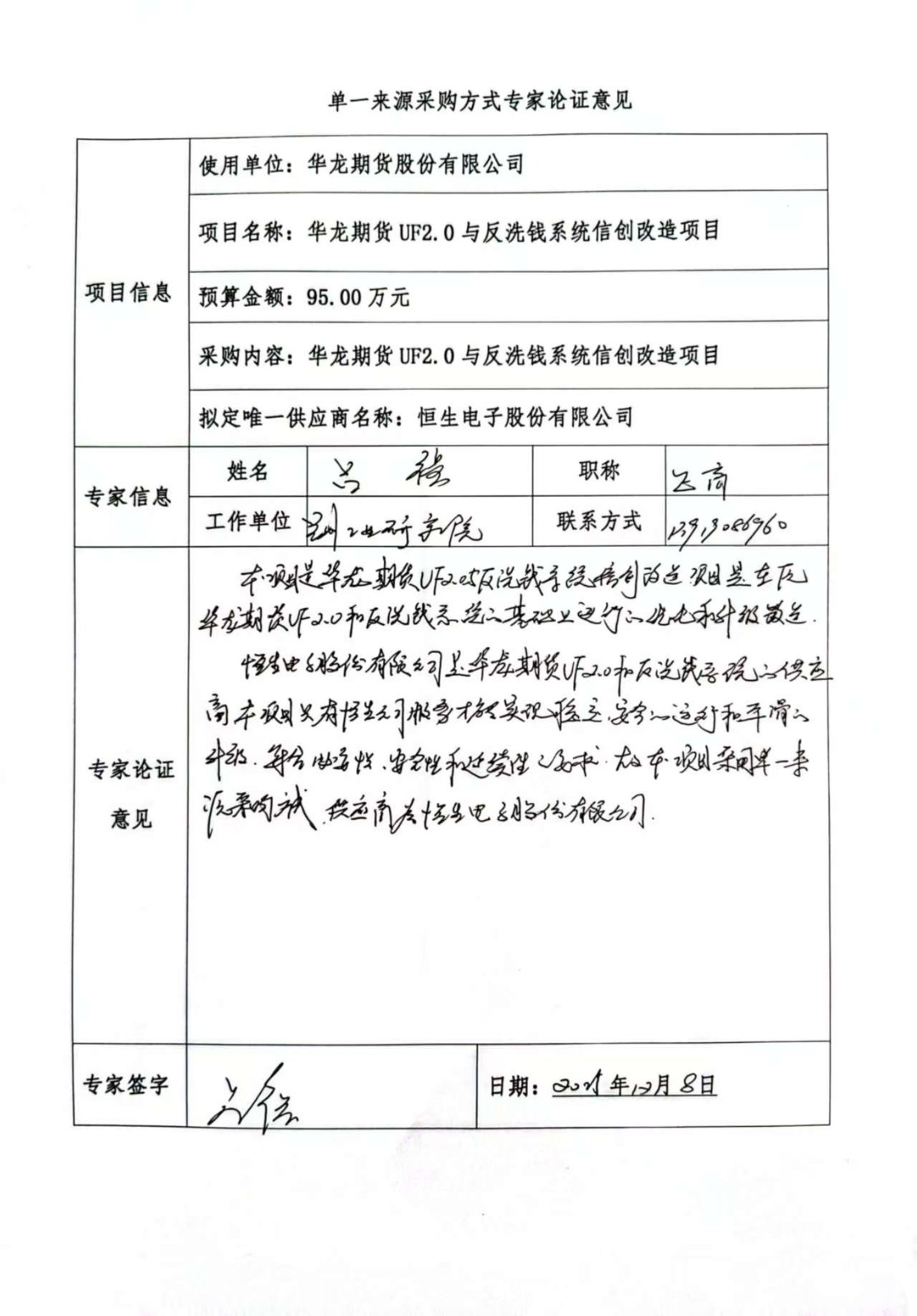 ? ?(七)擬定的唯一供應(yīng)商:恒生電子股份有限公司