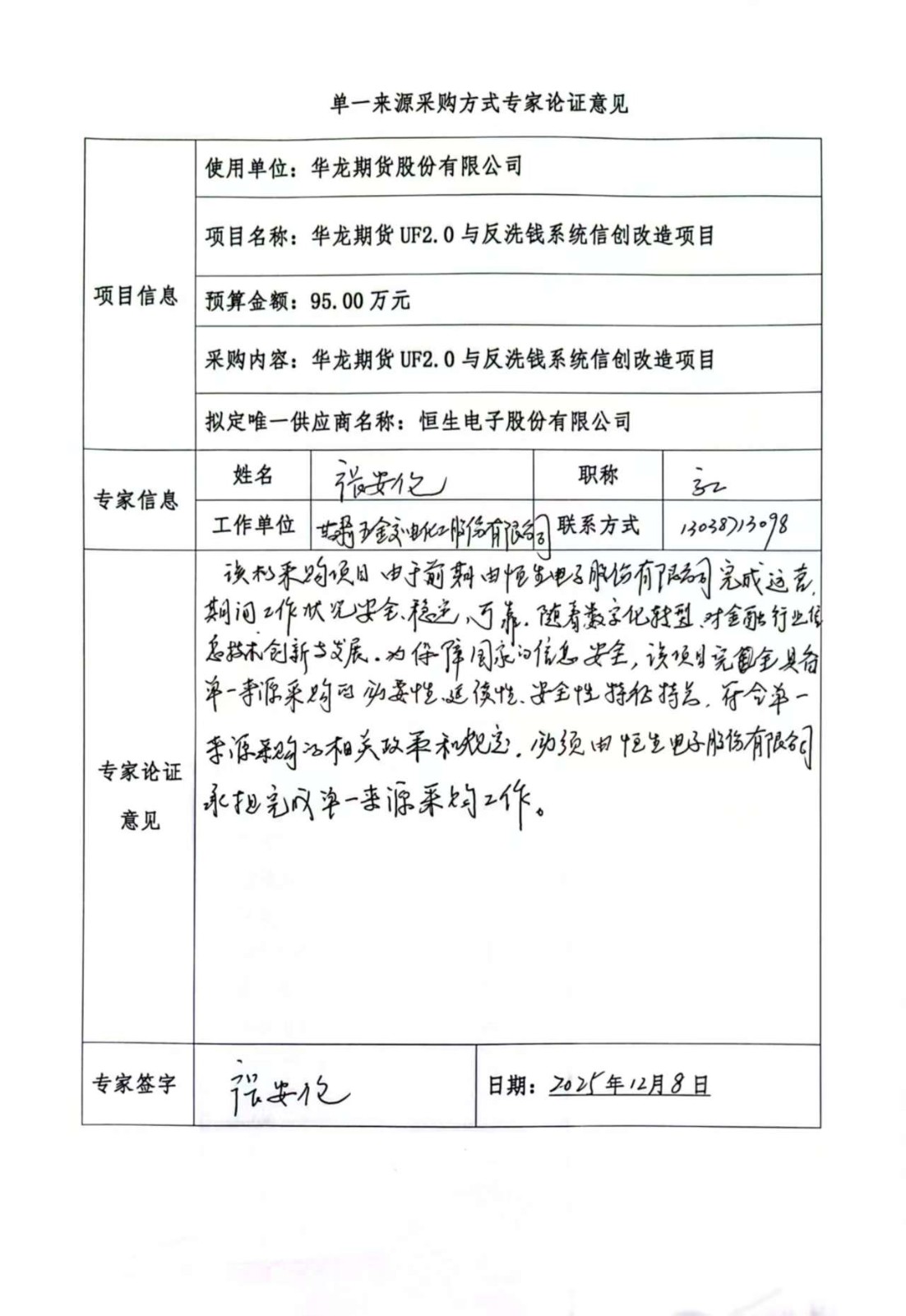 ? ? ?根據(jù)以上特點(diǎn),我公司擬采用單一來(lái)源方式采購(gòu)恒生電子股份有限公司的 UF2.0 和反洗錢(qián)系統(tǒng),以進(jìn)一步完善、提升華龍期貨的系統(tǒng)建設(shè)。具體包含以下內(nèi)容:1、賬戶系統(tǒng)的升級(jí);2、原系統(tǒng)增值模塊平移;3、數(shù)據(jù)遷移;4、信創(chuàng)適配改造。
