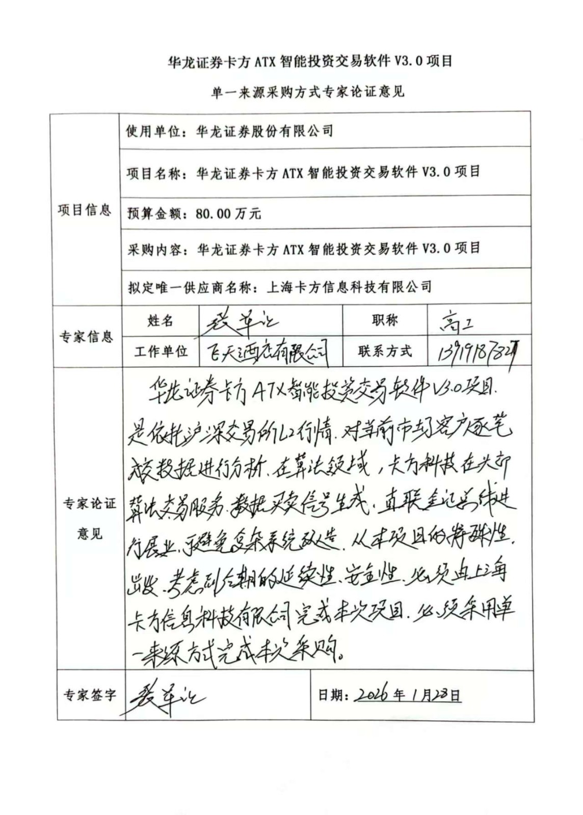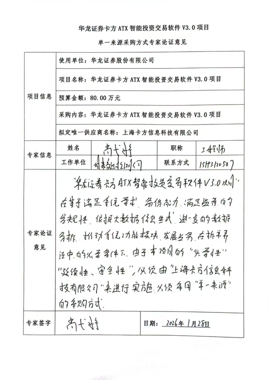 (十)任何供應(yīng)商、單位或個人對該項目采用單一來源采購方式有異議的,可以在公示期內(nèi)將書面意見反饋給華龍證券股份有限公司。