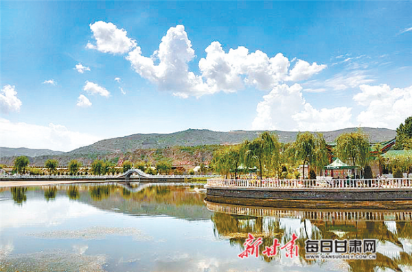 拾級而上,“一溪清流榭前過,滿貫假山勝蓬萊”,洮惠渠清波微漾,從山腳下穿過,向北潺潺流去,給人一個極為靈動的感受。