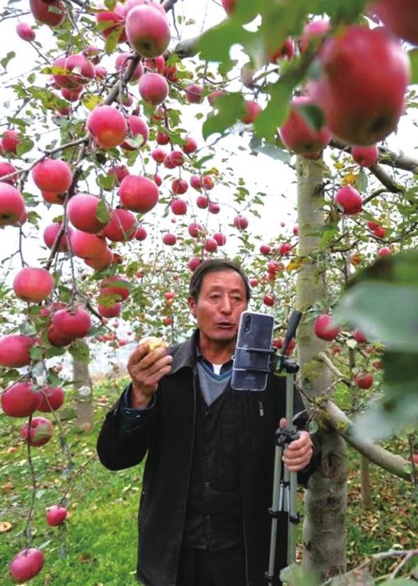 農(nóng)戶直播賣蘋果 蔣凌 攝