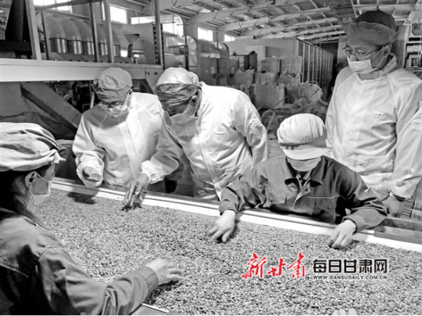 海關(guān)工作人員檢查出口瓜子仁。 掌上蘭州·蘭州晨報通訊員 程文波 攝