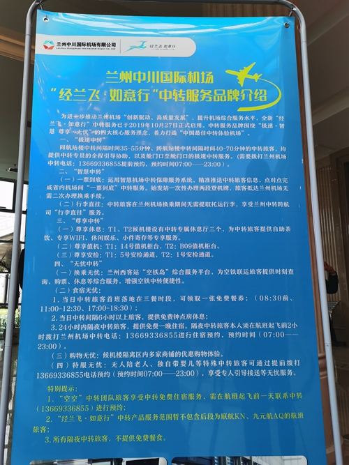 2016年,蘭州中川國際機場首推“四免、四優(yōu)、一專享”管家式服務(wù)的“經(jīng)蘭飛·無憂行”中轉(zhuǎn)服務(wù)品牌,并于2017年榮獲“年度民航創(chuàng)新服務(wù)獎”,成為蘭州機場“利民惠民”的一張靚麗名片。2019年,“經(jīng)蘭飛·無憂行”正式升級為“經(jīng)蘭飛·如意行”服務(wù)品牌,緊緊圍繞“極速·智慧 尊享·無憂”四大核心服務(wù)理念,推出“極速中轉(zhuǎn)”、“行李直掛免提取”、“隔夜免費住宿”等系列服務(wù)舉措,實現(xiàn)了“經(jīng)蘭中轉(zhuǎn)、通達全國”。2019年,蘭州中川國際機場完成中轉(zhuǎn)旅客吞吐量101.8萬人次,中轉(zhuǎn)旅客運輸量在全國機場中轉(zhuǎn)量排名第十位,在當年旅客吞吐量千萬級體量機場中排名第二位。2021年第一季度,蘭州中川國際機場完成中轉(zhuǎn)旅客吞吐量58萬人次,同比增長61%。