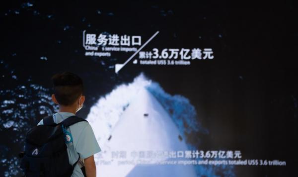 這是9月4日拍攝的國家會議中心中國服務(wù)貿(mào)易發(fā)展成就展現(xiàn)場。(新華社記者陳鐘昊攝)