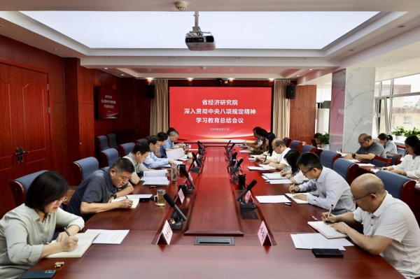 9月11日,省經(jīng)濟研究院召開深入貫徹中央八項規(guī)定精神學(xué)習(xí)教育總結(jié)會議,傳達(dá)學(xué)習(xí)習(xí)近平總書記關(guān)于深入貫徹中央八項規(guī)定精神學(xué)習(xí)教育的重要指示精神,落實中央和省委黨的建設(shè)工作領(lǐng)導(dǎo)小組會議要求,總結(jié)研究院學(xué)習(xí)教育成效,部署鞏固拓展學(xué)習(xí)教育成果、鍥而不舍落實中央八項規(guī)定精神、推進(jìn)作風(fēng)建設(shè)常態(tài)化長效化工作。院黨委書記周弘主持會議并講話,院長柴麗萍通報學(xué)習(xí)教育開展情況。